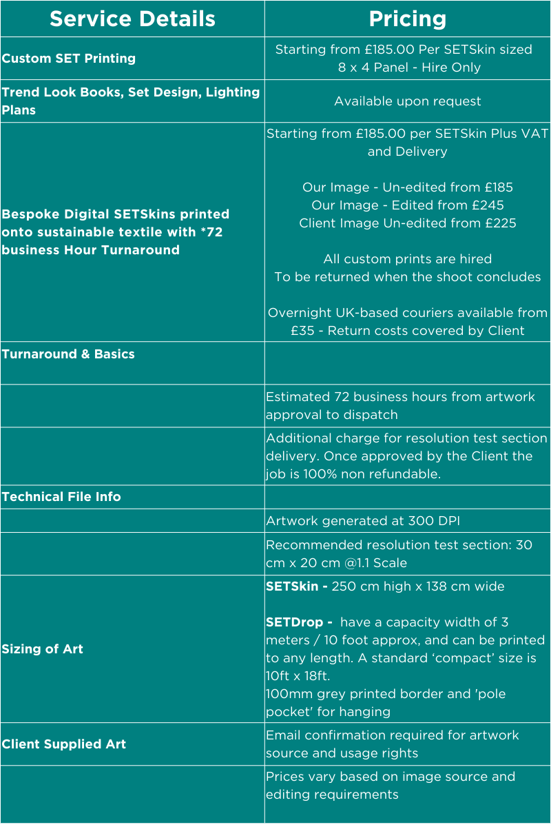 Need a Custom Printed Set ? We have 3700+ SET Design Options ready to print.